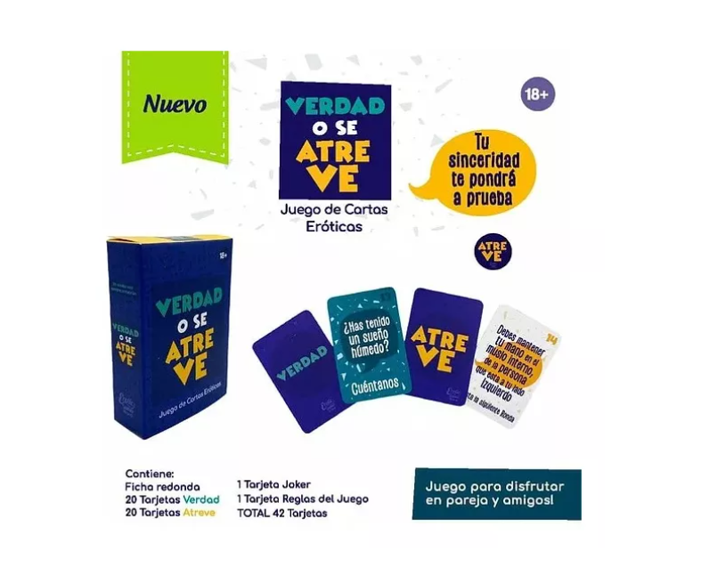 Juego erótico Verdad O Se Atreve 40 tarjetas entre verdades y atreve, en este juego debes ser sincero o atreverte al reto, todo está permitido y solo es obligatorio pasarla bien.