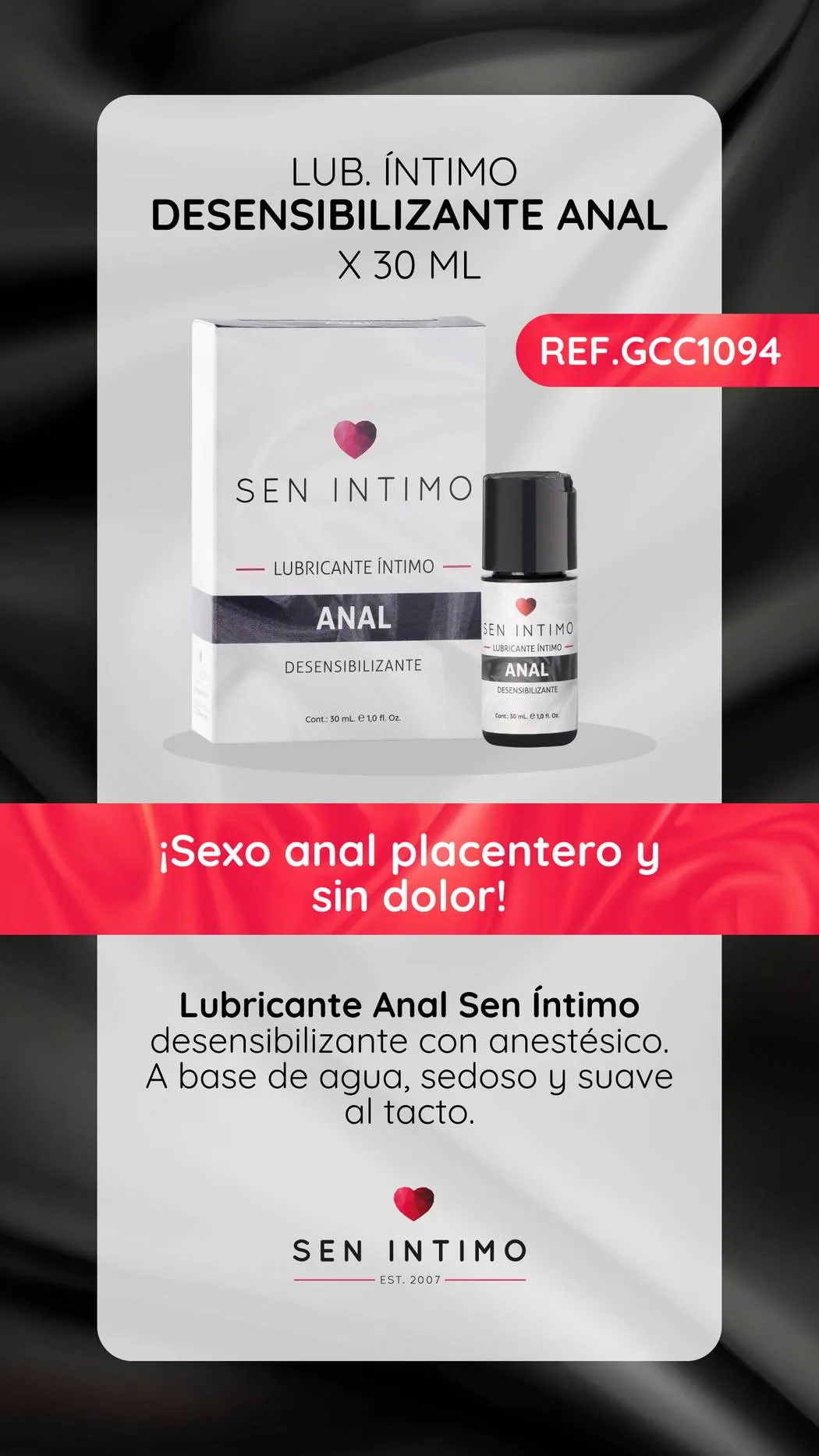 ¡Sexo anal placentero y sin dolor! Nuestro nuevo Lubricante Anal Sen Íntimo desensibilizante con anestésico, que garantiza una relajación de la zona y una óptima lubricación.