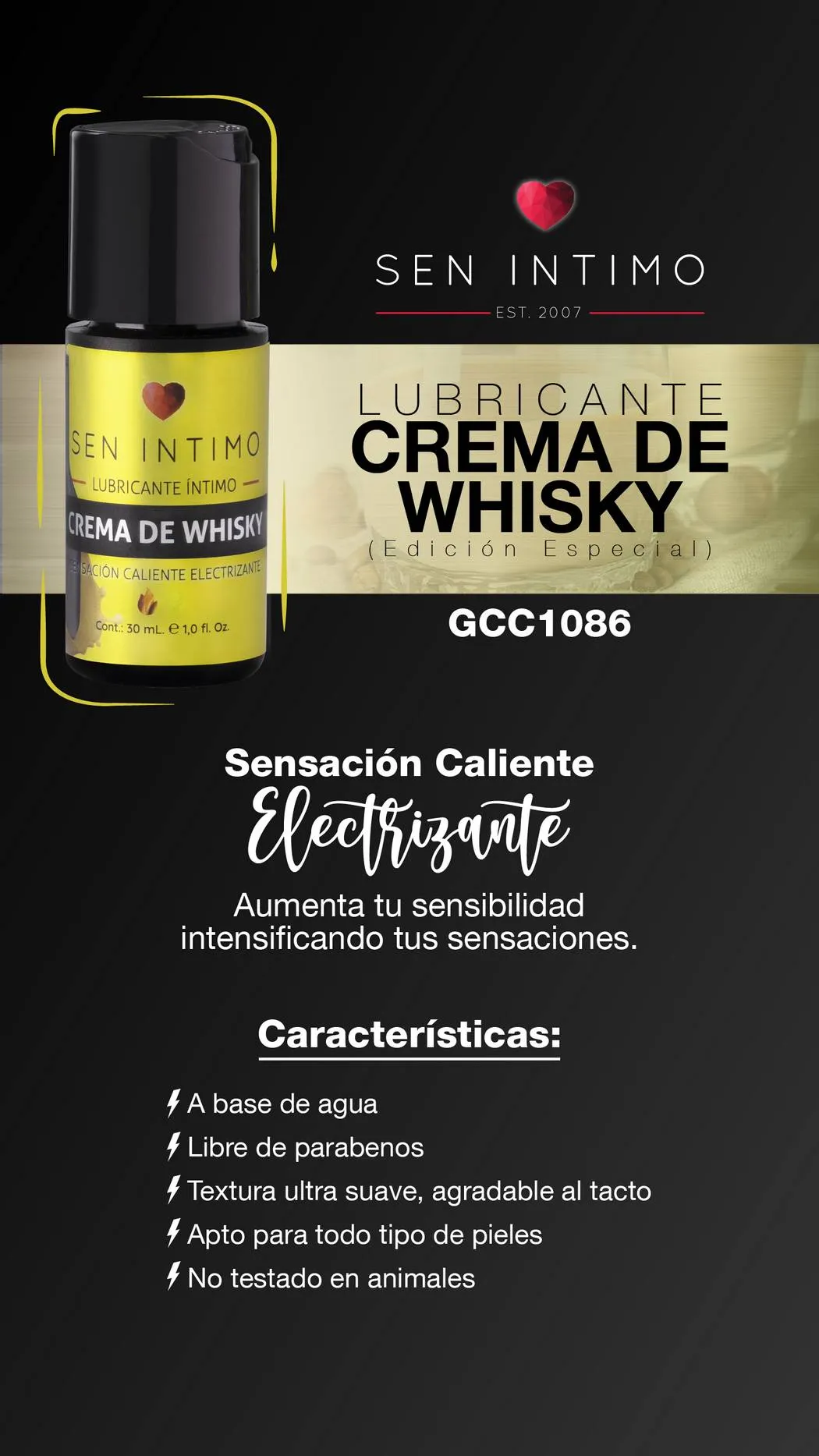 Lubricante Íntimo Crema de Whisky Sensación Caliente electrizante x 30 ml by Sen Íntimo